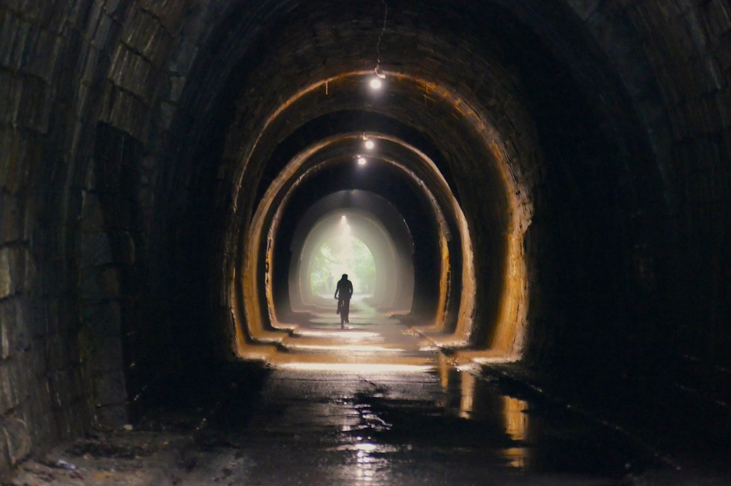 Kráčam po cestičke, keď tu zrazu, objaví sa predo mnou vstup do tunela. Tmavý, hlboký, na koniec nedovidím. Žmúrim do tmy. Jediné, čo zazriem, je jemný opar vznášajúci sa okolo stropných svetiel, ktoré sa zasvietili po tom, čo sa z tmy vynorí cyklista. Obmurované steny sa v diaľke strácajú a nahrádzajú ich nahrubo otesané skaly. Tak teda poďme na to. Vstúpme do Margecianskeho starého tunela.
